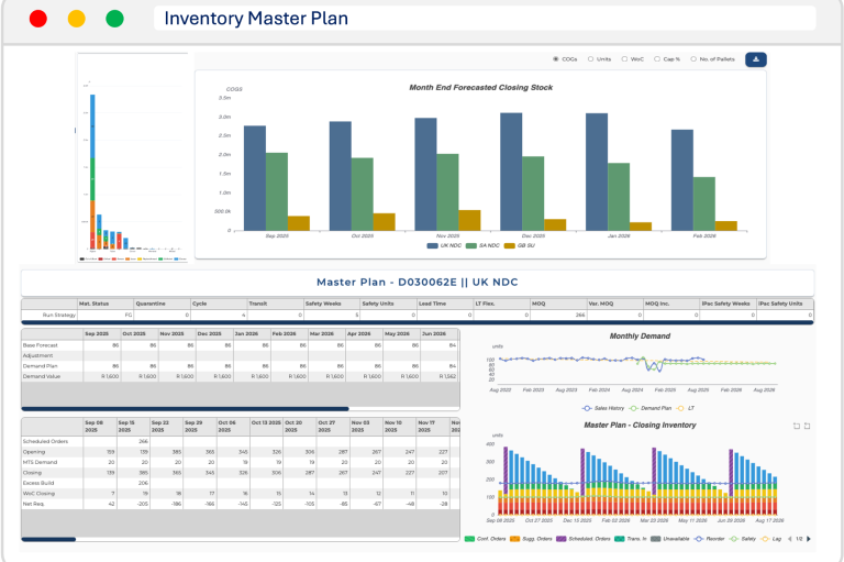 Converting your demand plans into supply requirements against run strategies, MOQ's, lead times and safety stock settings that can be set against demand & supply variability and service level requirements