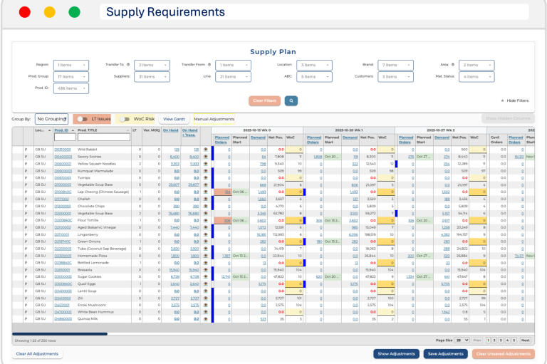 Converting your demand plans into supply requirements against run strategies, MOQ's, lead times and safety stock settings that can be set against demand & supply variability and service level requirements